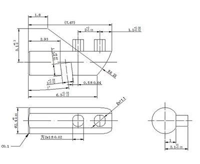 此款彈子圖紙難點(diǎn)在于產(chǎn)品結(jié)構(gòu)復(fù)雜,加工定位難,設(shè)計(jì)基準(zhǔn)和加工基準(zhǔn)不一致而容易導(dǎo)致尺寸不穩(wěn)定;